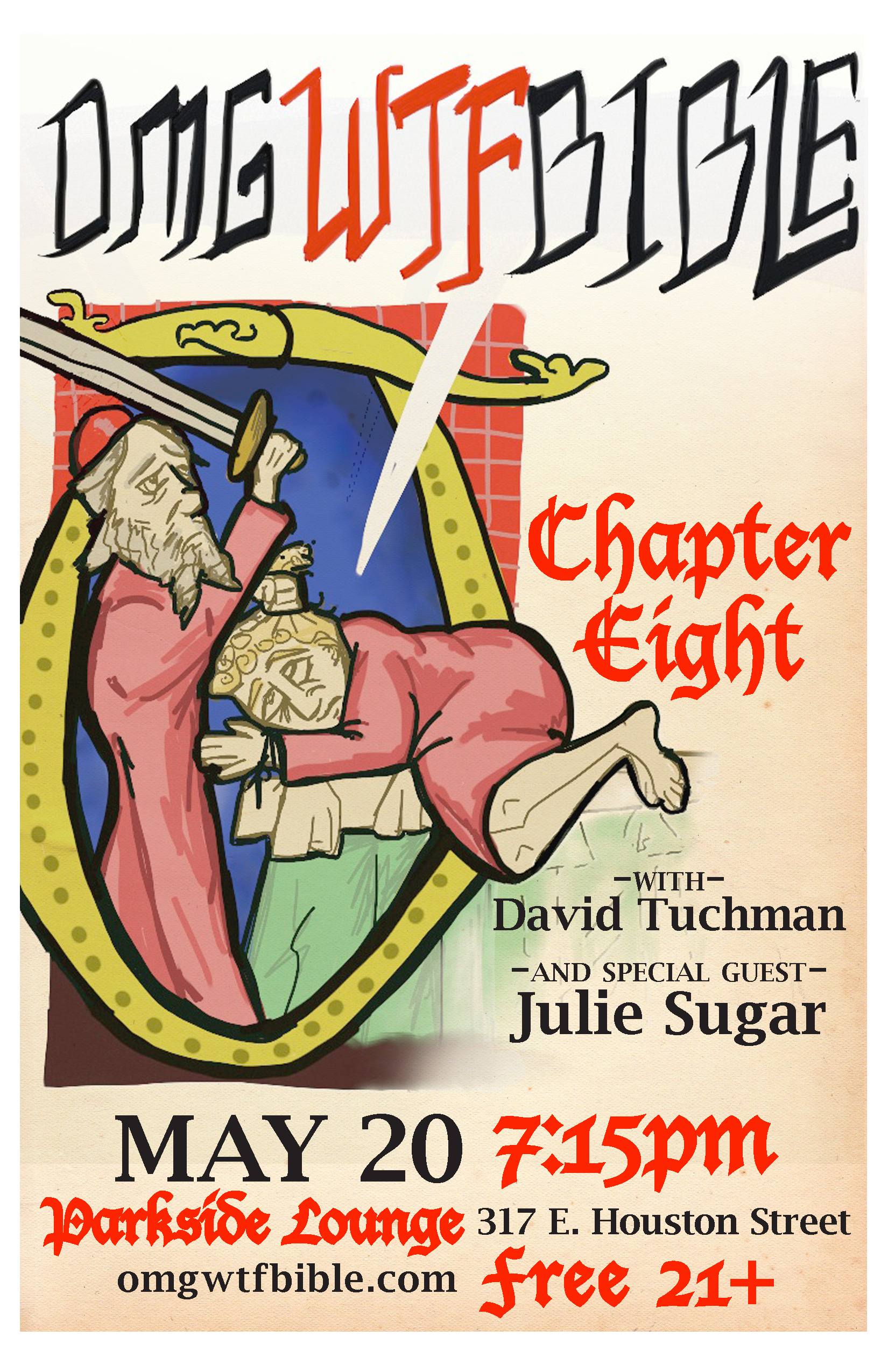 Be there if you can! I’ll be handing out all sorts of free OMGWTFBIBLE paraphernalia to everyone who shows up. Brochures! Stickers! Show posters!
